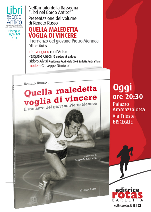 Questo libro, tra ricordi, testimonianze, immagini e cronache giornalistiche, briciole d’archivio raccolte qua e là, come in un puzzle, ricostruisce la vita del giovane Pietro Mennea, negli anni vissuti a Barletta, la sua città natale, la dimensione umana dell'atleta, il suo percorso sportivo-agonistico, il suo ostinato talento, la sua tenace voglia di arrivare ad ogni costo.